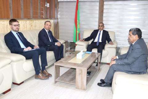 أجرى معالي وزير الداخلية وترقية اللامركزية والتنمية المحلية، السيد محمد أحمد ولد محمد الأمين، صباح اليوم الإثنين بمكتبه مباحثات مع سعادة السيد بوريس زيلكو، سفير روسيا الاتحادية المعتمد لدى بلادنا.